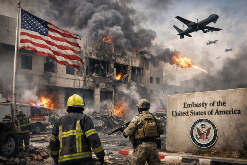 In a dramatic escalation of the Middle East conflict, two Iranian drones struck the United States Embassy in Riyadh, Saudi Arabia on Tuesday morning, causing a limited fire and minor material damage to the diplomatic compound, according to Saudi authorities. The attack — one of the most significant direct assaults on a US diplomatic mission in the Gulf in decades — has triggered stern warnings from Washington and raised the specter of further retaliation as regional hostilities continue to spiral.